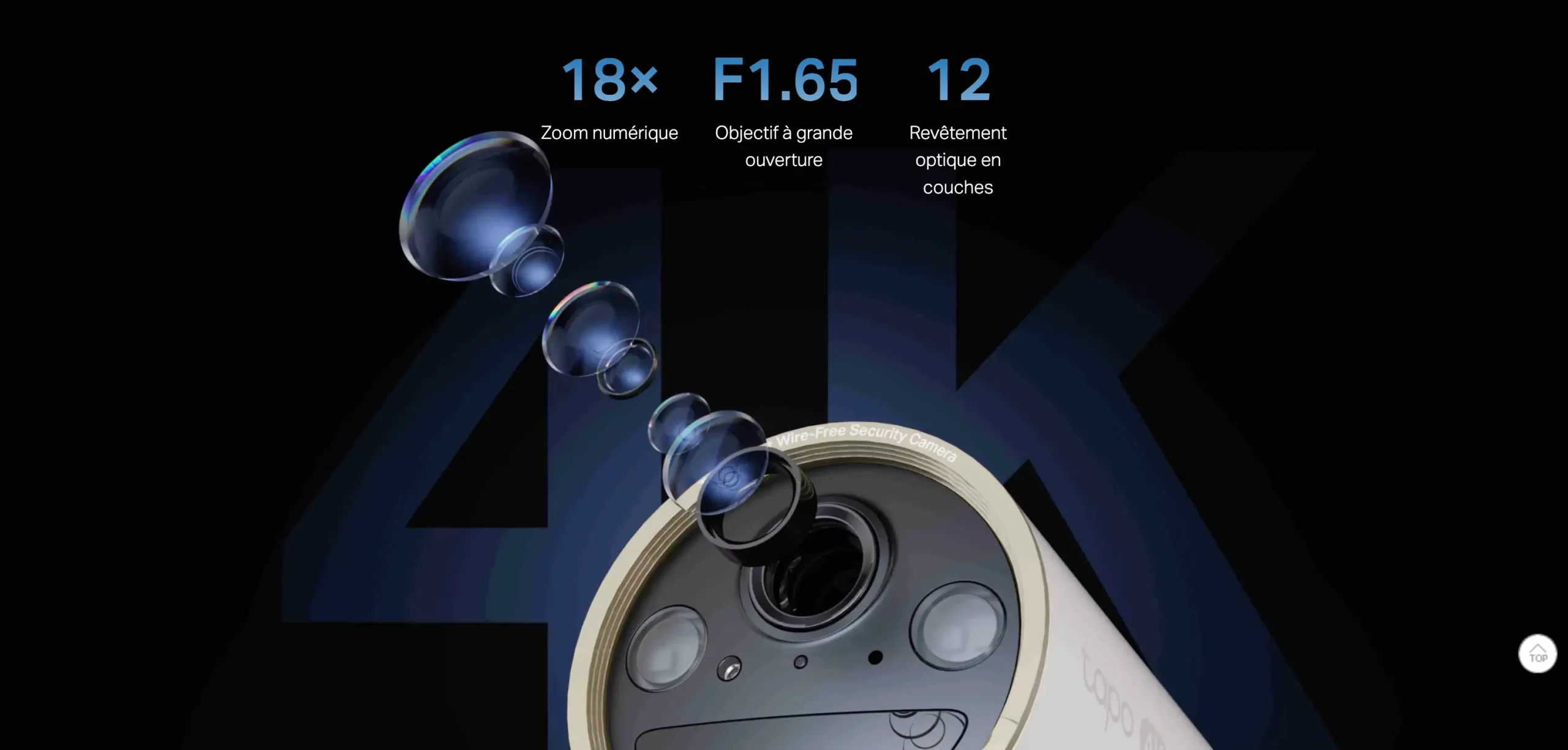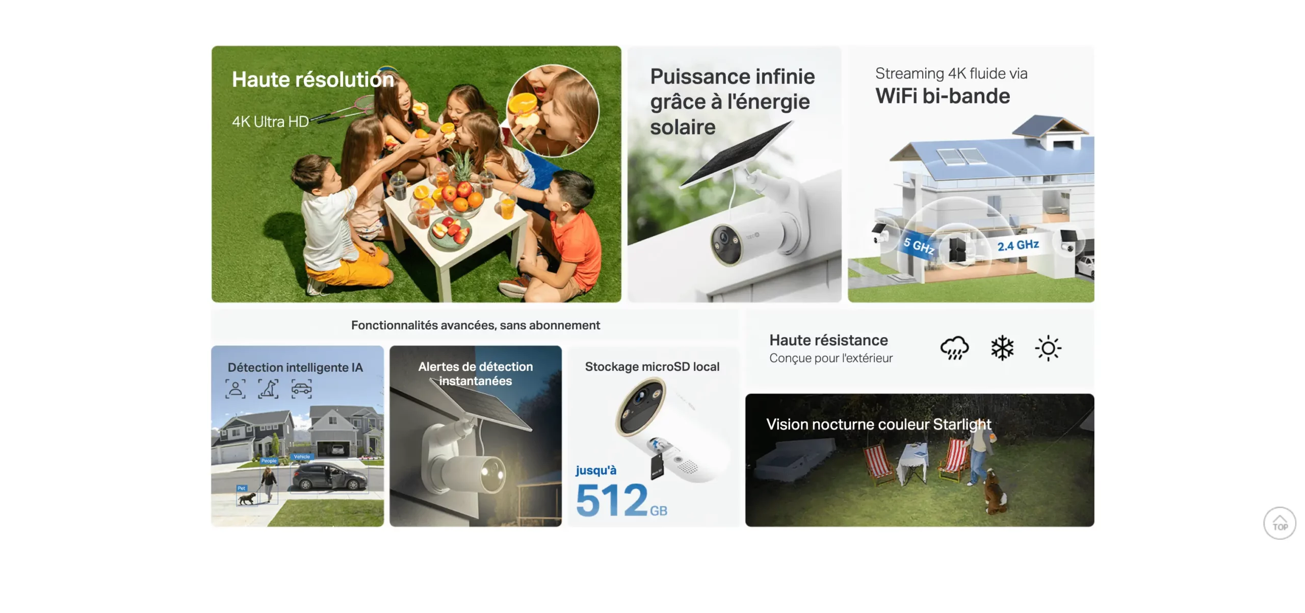 | Éclairage | 2× Built-in Spotlights Motion Activated, App-Controlled |